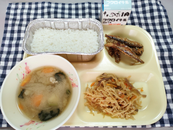 ・ごはん ・牛乳 ・きびなごのごまだれかけ ・切り干し大根の含め煮 ・さつま汁
