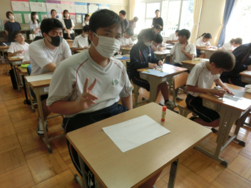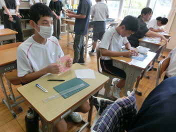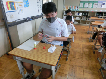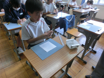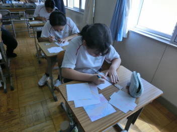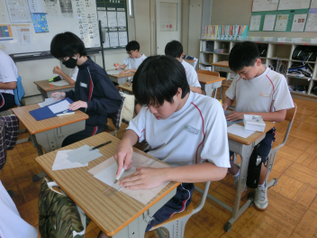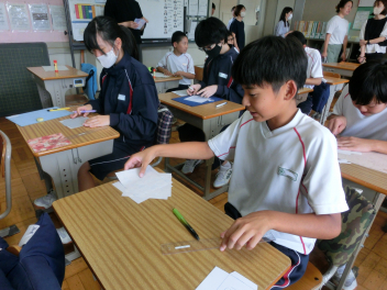 生徒たちは10組ショップに向けてポチ袋を作っています