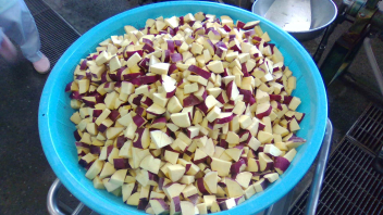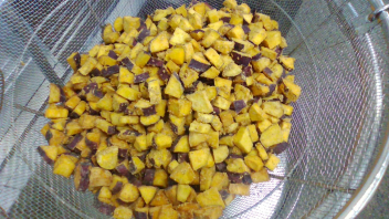 さつまいもの香味揚げは、旬のさつまいもに塩・ごま・小麦粉をまぶして揚げました。さつまいものホクホクとした食感や甘さと、ごまの香ばしさを味わっていただけたでしょうか