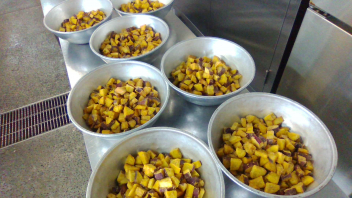 明日の給食は「ポークシチュー・ほうれん草ソテー・バナナ」ですsad
