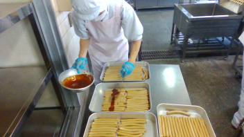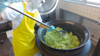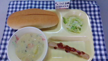 月曜日の給食は「ウインナーソーセージ・ボイルキャベツ・秋味シチュー」です。来週の給食もお楽しみにしていてくださいね
