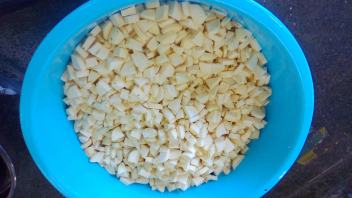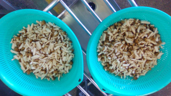 今日は、しょうゆ・みそ・砂糖・酒・みりん・ごまで特製ダレを作りました。
