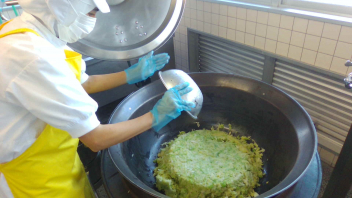 「おひたし」はもやし・チンゲン菜を使い、さっぱりとしょうゆ味で調理しました。