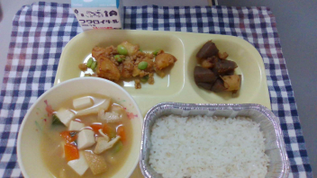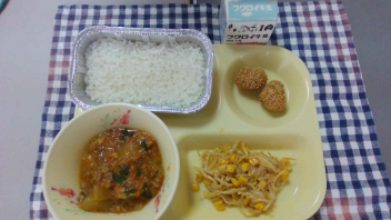 ・米飯 ・牛乳 ・麻婆豆腐 ・もやしの中華和え ・ごま団子