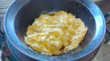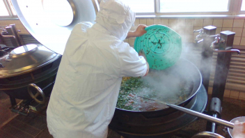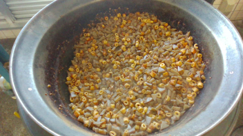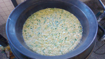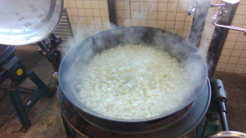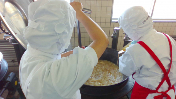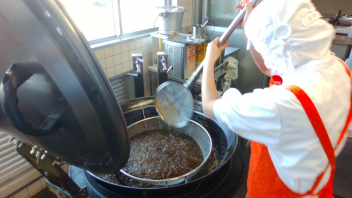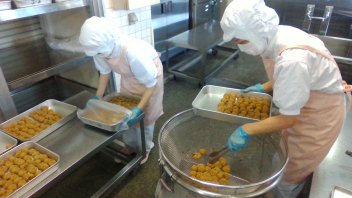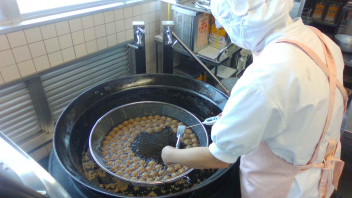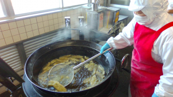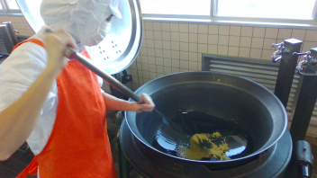 ごま団子を揚げるには揚げ油の温度管理や引き上げるタイミングが難しいですが、プロの技でおいしく仕上がりました。(爆ぜないように、ゆらゆらと揺らしながら揚げることがポイントだそうです!)