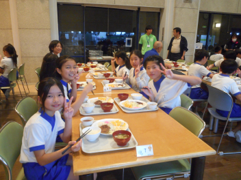 午後はいよいよ本格的な活動に入りました。あいにくの雨ではありましたが、ウォークラリーを行いました。グループで協力しあい、ゴールに到着したとき、「楽しかったぁ!」という声がたくさん聞こえてきました。夕食もおいしくいただきました。事前に決めたそれぞれの係が責任をもって役目を果たす姿もとても素敵でした。