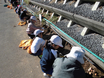 • 3年生が船明運動公園の東側にある花壇にチューリップの球根を植える活動を行いました。毎年、3年生が球根の植え付けを行っています。みんな丁寧に球根を植えていました。3年生のみなさんが植えたチューリップが春に色とりどりの花を咲かせるといいですね。春を楽しみにしていましょう!