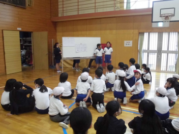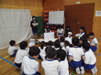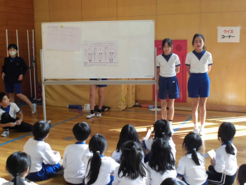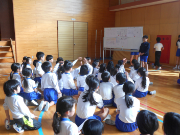 学校保健週間が始まりました。昼休みに保体委員会が体育館でイベントを行いました。内容はふわふわ言葉チクチク言葉に関する紙芝居、健康に関するクイズ、的あてゲーム。子供たち主体の活動が、一人ひとりの健康保持増進につながっていくといいなと思います。