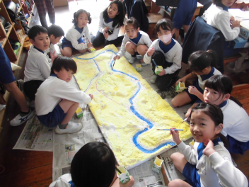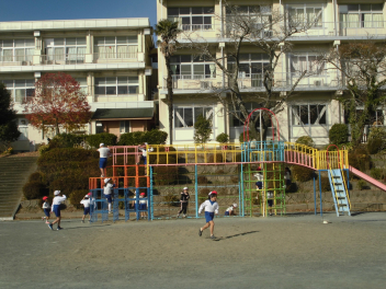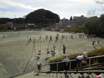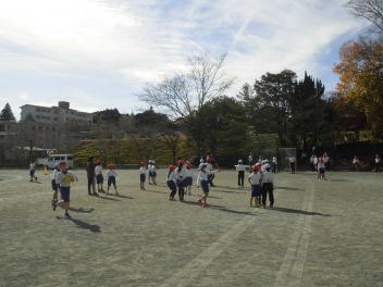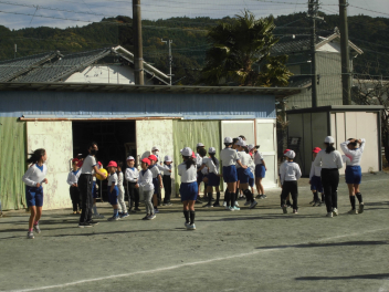 水曜日の昼休みはロングの昼休み。13時45分から13時30分まで45分間。運動場に子供たちの元気のよい声が響き渡っていました。5年生が話し合い活動の中で1年生と一緒に遊ぶ企画を計画しており、今日はそれを実行する日でした。5年生が待つ体育器具室のところににニコニコ顔の一年生がたくさん集まってきていました。