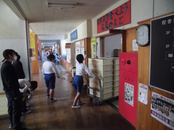 昼休み前、給食室前の様子です。給食委員会の子たちが一生懸命に仕事をしていました。どの委員会でも自分の役割をしっかり果たす子がとても多く、これも光明小のよいところの一つです。みんなのためにいつもありがとう!!