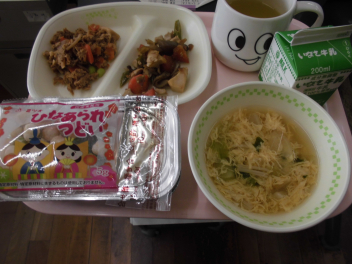 今週は短縮日課です。子供たちは給食を食べて下校となりました。家に帰ってからのゆとりがたくさんでき、また、暖かい日となったので屋外で遊ぶ子も多いと思います。ルールを守り、安全に気を付けて充実した時間を過ごしてほしいと思います。また、今日の給食はひなまつり献立でした。ちらし寿司、ひなあられ、季節の趣を感じながらおいしくいただきました。