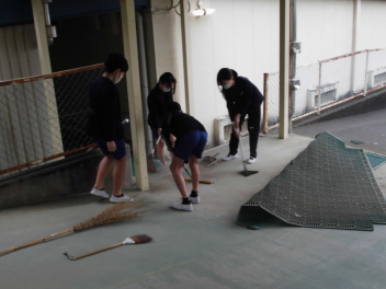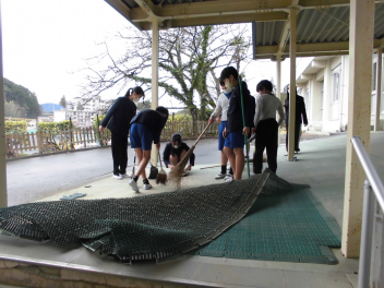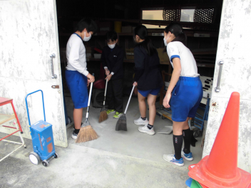 • 6年生が家庭科の学習「共に生きる地域での生活~学校をきれいにしよう~」の学習で、学校の清掃活動を行いました。自分たちで校内の清掃する場所を決め、グループで協力して、体育館の周りや、図書室、体育器具庫の中等を清掃しました。校内がとてもきれいになりました。6年生のみなさん、ありがとう。