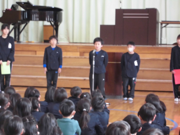 学年代表の子たちが2学期を自分の目標への取り組みを振り返りながら、これから頑張りたいことを発表しました。みんな堂々と発表し、とても立派でした。