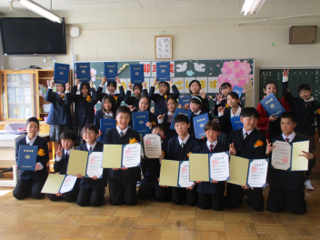 今日は令和7年度2学期終業式でした。式の前に書写作品展の入賞者の表彰と試すっ子賞の表彰を行いました。