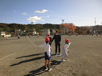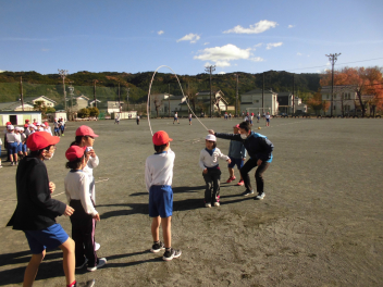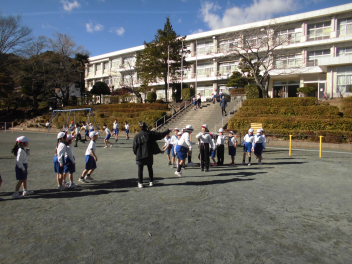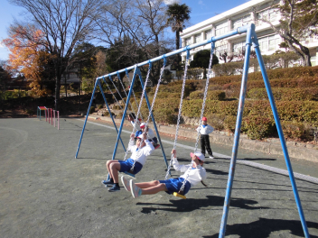 水曜日の昼休みはロングの昼休み。13時45分から13時30分まで45分間。運動場に子供たちの元気のよい声が響き渡っていました。5年生が話し合い活動の中で1年生と一緒に遊ぶ企画を計画しており、今日はそれを実行する日でした。5年生が待つ体育器具室のところににニコニコ顔の一年生がたくさん集まってきていました。