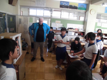 水曜日の昼休みはロングの昼休み。13時45分から13時30分まで45分間。運動場に子供たちの元気のよい声が響き渡っていました。5年生が話し合い活動の中で1年生と一緒に遊ぶ企画を計画しており、今日はそれを実行する日でした。5年生が待つ体育器具室のところににニコニコ顔の一年生がたくさん集まってきていました。