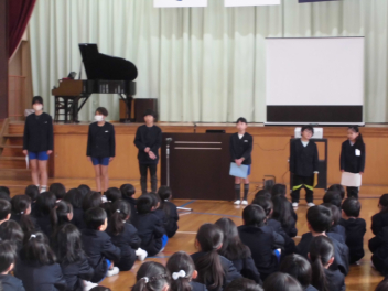 いよいよ3学期が始まりました。学年代表の子たちが3学期の目標を決意とともに力強く発表しました。3学期は50日もありません。1日1日を大切にして、自分の学年でやり残したことのないようにしましょう!!