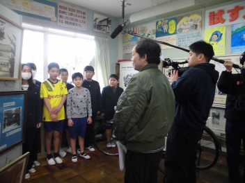 「昭和のリーダーたちの言葉」をテーマにしたテレビ番組の取材が来ました。本校は本田宗一郎さんの言葉を校訓にしている、その校訓の記念碑がある、本田資料室があるなどの理由から光明小学校が編集される方の目にとまったようです。総合的な学習の時間に本田宗一郎さんについて調べ学習を進めてきた3年生、学校のリーダーとしての6年生にマイクが向けられました。みんな学んできたことをもとにしながら自分の思いを語っていました。