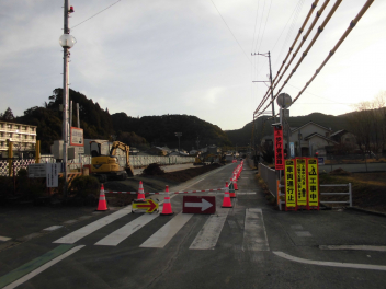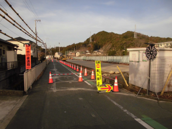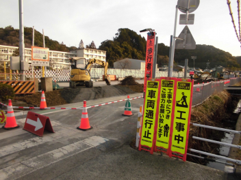 運動場南側の道路がいよいよ通行止めとなります。画像は今朝の道路状況です。工事が安全かつ計画通りに進むことを願うばかりです。歩行者用の通路は確保されていますので、児童の徒歩による登下校には特に支障はありません。