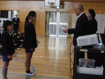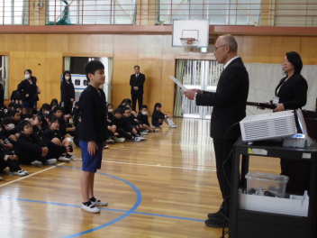 今日は令和7年度2学期終業式でした。式の前に書写作品展の入賞者の表彰と試すっ子賞の表彰を行いました。
