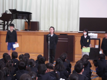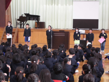 学年代表の子たちが2学期を自分の目標への取り組みを振り返りながら、これから頑張りたいことを発表しました。みんな堂々と発表し、とても立派でした。