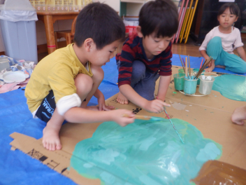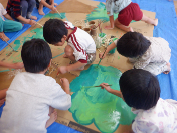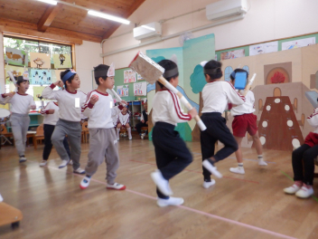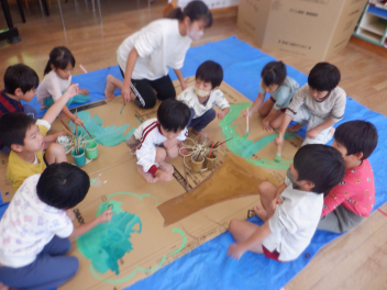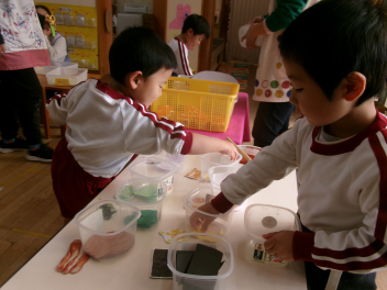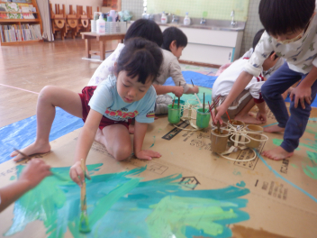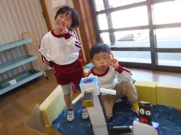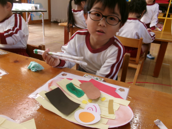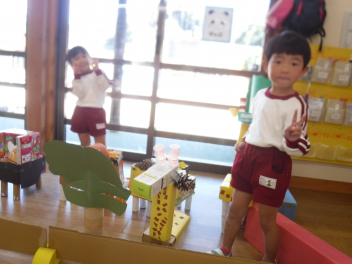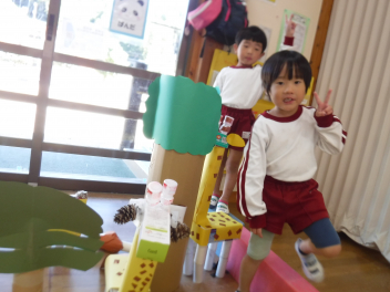 そして、みんなで見せ合ったり、動かして遊んだりしました。動物園の動物を見たことがよみがえってくるようで、楽しい製作になりました。
