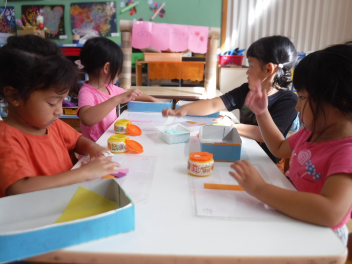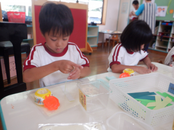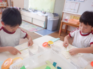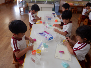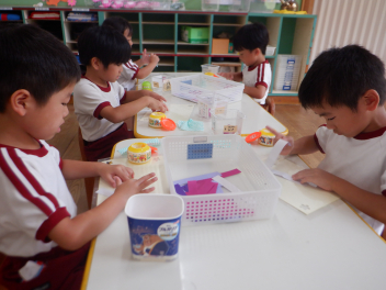 • 年長らいおん組さんが行った製作活動を紹介します。