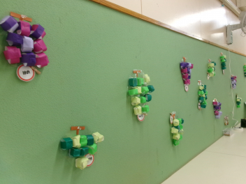 みんなのぶどうを壁に飾りました。おいしそうにできたね。