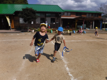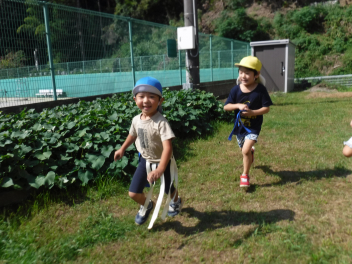 • 年中ぱんだ組さんは、園庭を走り回ってしっぽとり遊びを楽しみました。
