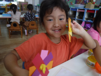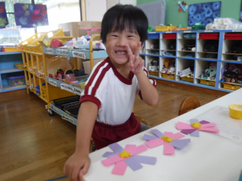 • 年中ぱんだ組さんは、みんなでコスモスをつくりました。