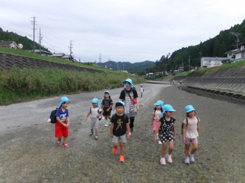 秋を感じ、気持ちよく楽しい散歩になりました。園に帰ったら、彼岸花の絵を描いてみようね。