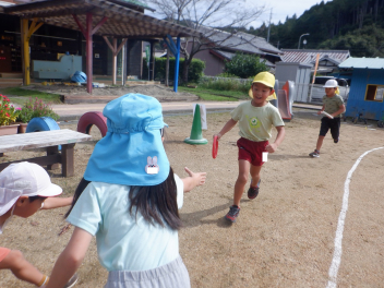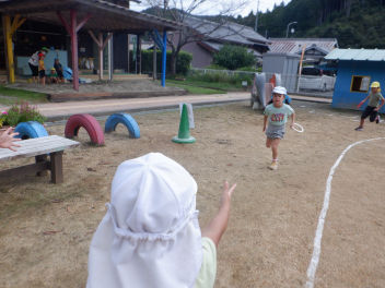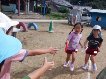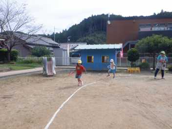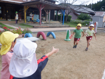 熱中症対策として、暑い時期には保育室前での降園をしてきましたが、暑さ指数も下がってきましたので、今日から園庭での降園を再開しました。