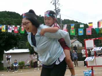 親子の絆、仲の良さが試されました。でも、自然に笑顔があふれて…とっても楽しそうに競技していました。
