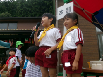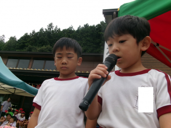 開会式では、年長らいおん組の代表の子が、はじめの言葉を発表しました。