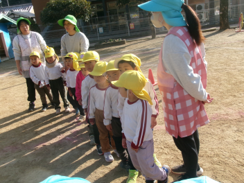 「ひよこ組さんは、○○先生の後ろに一列に並んで集まれ。」