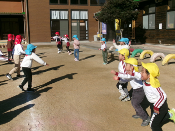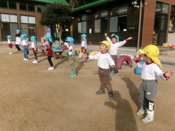 • 今朝は寒さも和らぎ、遊びやすくなりました。子供たちは、元気いっぱい「げんきっこタイム」に取り組みました。