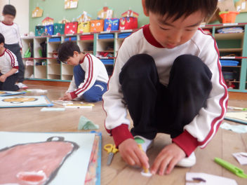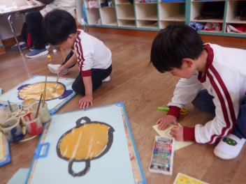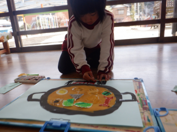 • 6日(金)は、「おでんパーティー」をします。年長らいおん組さんは、おでんの絵を描きました。