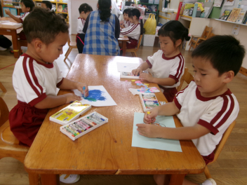 • 年中ぱんだ組さんは、10月7日(火)と8日(水)に、十五夜にちなんでお月さまの絵を描きました。