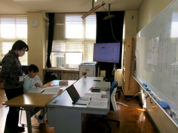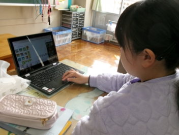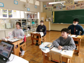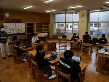 4年生算数は上阿多古小とつないで遠隔合同授業。