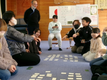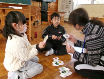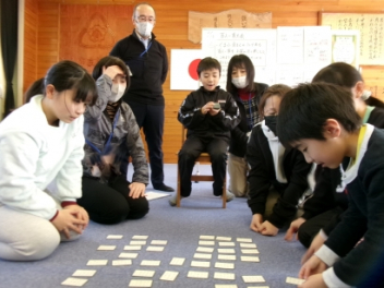 めあて発表では、覚えた札を取りたいと意気込みを語る子供たち。