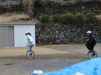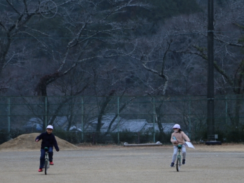 教師の「(みぞれのため)一輪車延期~」の合図とともに、一斉引き上げです。
