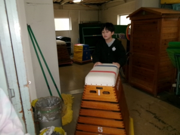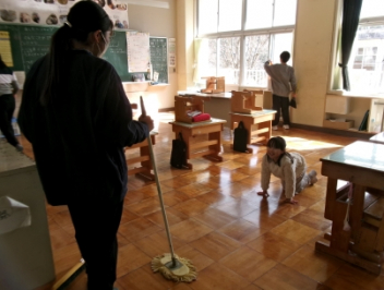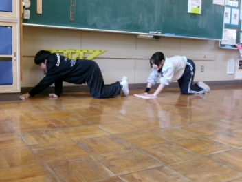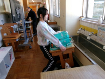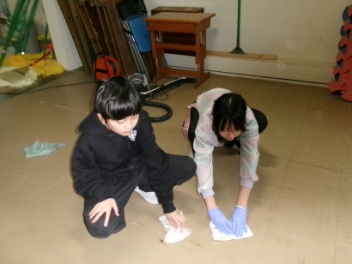 大きな荷物を協力して運んだり、床の水拭きをしたりしました。