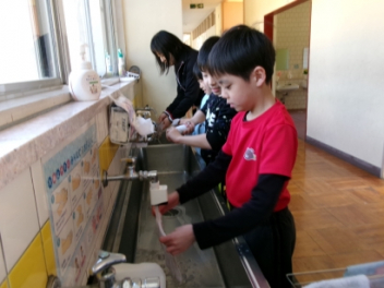歌声、室内運動、英語で遊ぼうの3つに分かれての活動です。