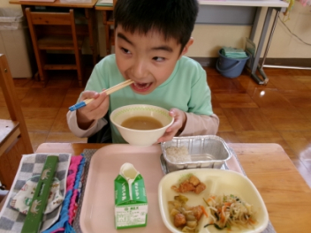 おいしいみそ汁を提案してくれた5年生、それを調理してくださった給食センターの両者に感謝です。