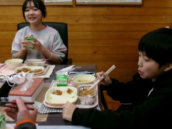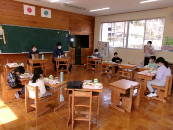 昨日は3,4年生が校長室を訪問し、校長と一緒に食事をしました。