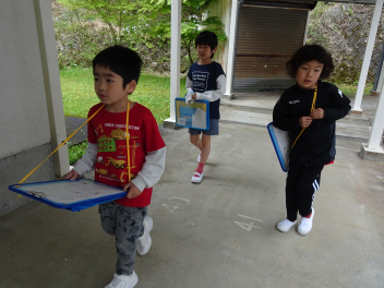 先日作った2つのグループでウォークラリーに出発です。