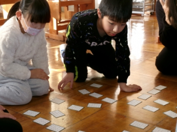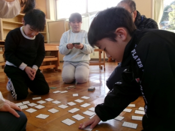 前半は、1,2年生は坊主めくり、3年生以上はかるた取りです。