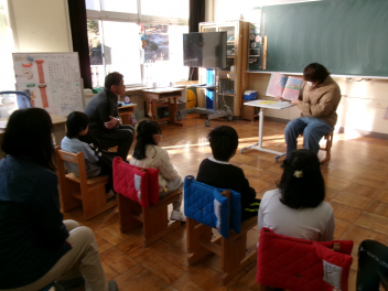 上阿多古小学校の児童も教室に参加しました。熊幼稚園の園児も一部参加です。