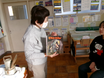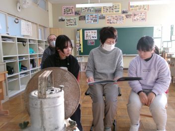 高学年は…何やら昔の道具が机の上に。「ランタン」です。少し前の時代のお話でしょうか。
