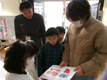 幼稚園の年長さんの給食体験がありました。4月から始まる小学校生活の1つである給食を一足先に体験します。配膳、片付けを見学し、一緒に給食を食べます。